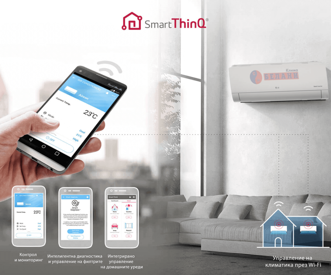 Ние от Белани Клима искаме максимално да улесним забързаното Ви ежедневие - затова ексклузивно и единствено само при нас можете да намерите инверторните климатици LG Standard S S18EQ.NSK / S18EQ.UL2 и LG STANDARD S S24EQ.NSK / S24EQ.U24 с вградена Wi-Fi функция.