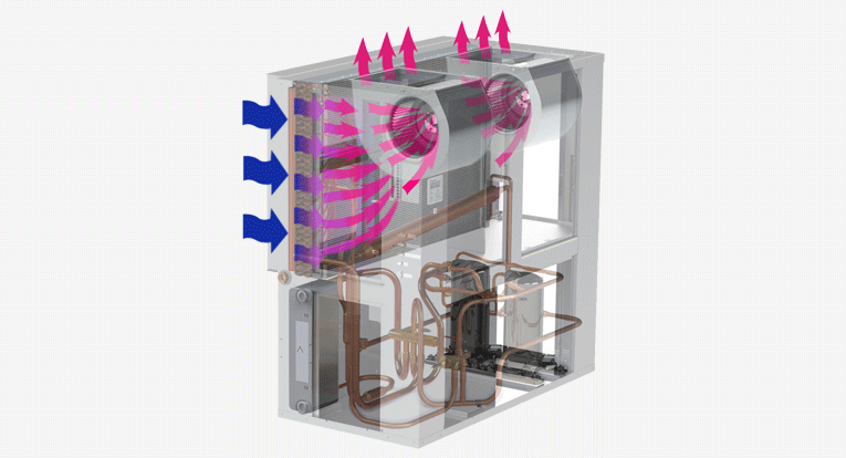 външен въздух в устройството, който придобива ефективност на отопление до 1,5