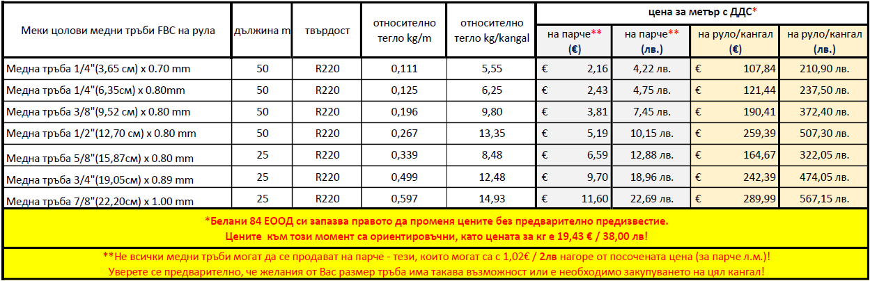 Медна тръба на руло 3/8'' (9,52 мм) х 0,80 мм